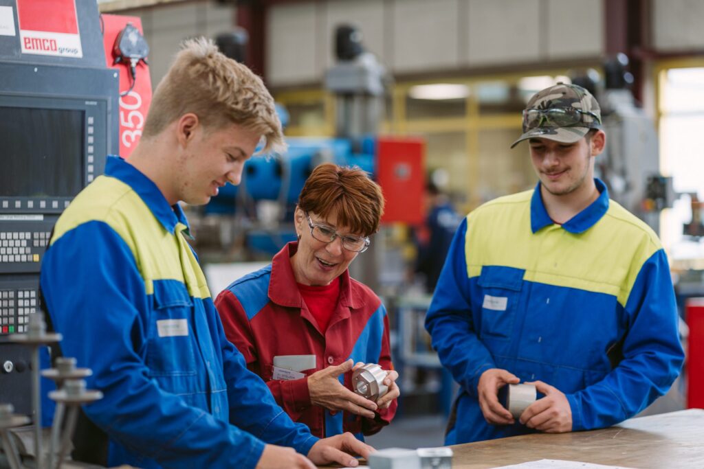 In unseren Ausbildungsstätten, die auf dem neusten Stand der Technik sind, lernt Ihr Kind den Umgang mit modernsten Technologien. Unsere Ausbilder:innen gehen dabei über den Lehrplan hinaus: Die Förderung sozialer Kompetenzen ist uns genauso wichtig wie die Vermittlung von fachspezifischen Inhalten. Gemeinsame Events und Aktivitäten wie Ausflüge oder auch Sprachreisen fördern die Kollegialität und den Teamgeist der jungen Menschen.